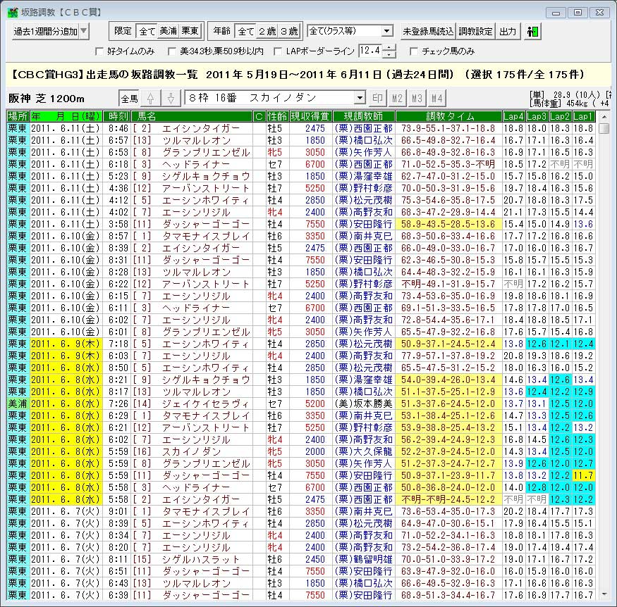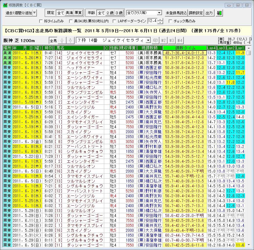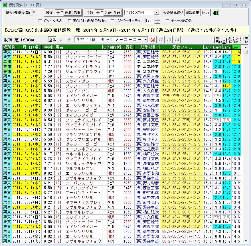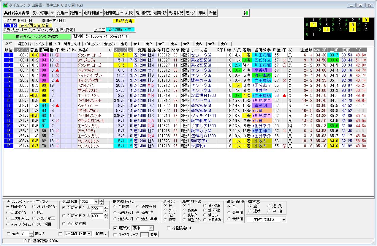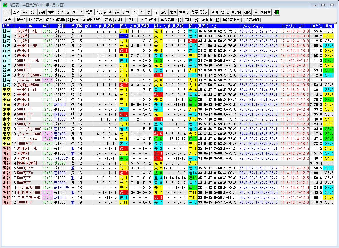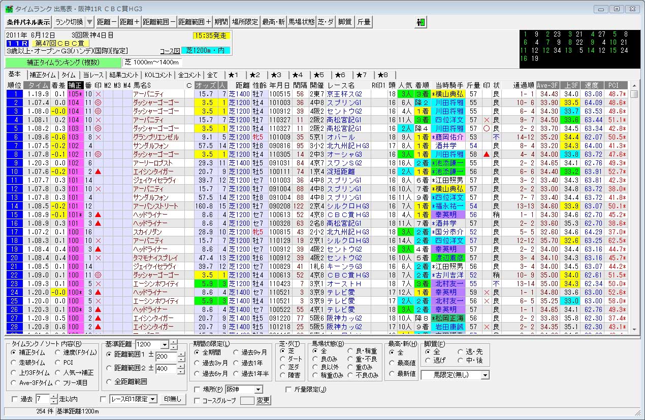 一つの画面で、過去の走破タイムや上がり3Fタイムといった様々なタイムを一覧・ソート出来ます。自分の好みに合った条件を指定する事も出来るんで、重宝するツールです。