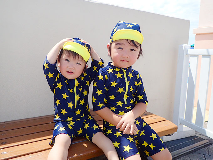 遊び始めた頃に降っていた雨も、予想通り30分ほどで上がり、その後は真夏の青空が戻ってきてプール日和に。