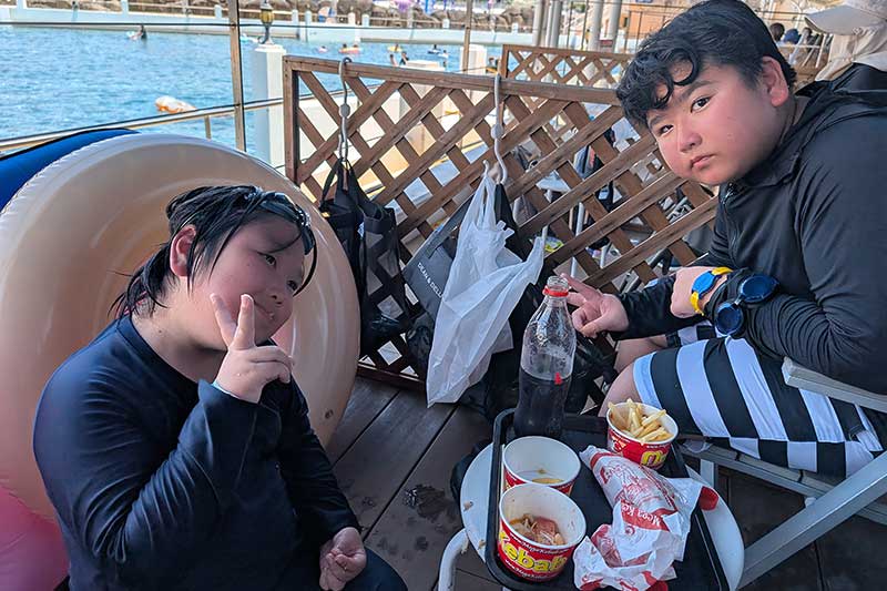 ※子供達が小さい頃は、一緒にプールへ入る必要がありましたが(ライフセーバーの方にも「お子さんだけで遊ばないように」と指導を受けます)、今は各々が自由に遊べるのでマッタリ休憩できます。