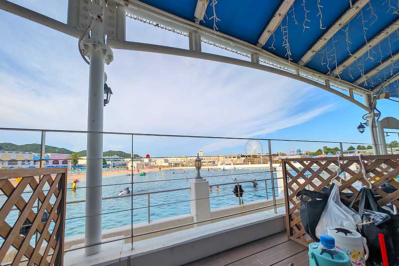 ラグナシアは、プールや遊園地が一緒になっていますが、随時動き回っている訳では無く、食事や水分補給の休憩、浮き輪や荷物置き場といった感じで、そこをベースにして落ち着く事ができます。