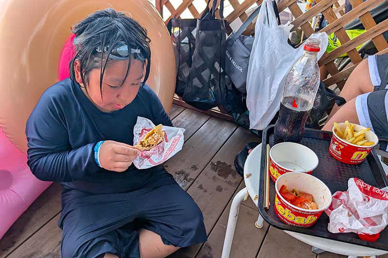 我が家は小・中学生なので、水分補給と食事に利用しますが、未就学児など小さいお子様がいらっしゃるなら、ここの日陰でコテンと昼寝もできますし、レンタルして損は無いかと。