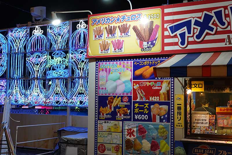 例年であれば、17時までプールで遊び、一旦ホテルへ引き上げ夕食を取り、食後の散歩を兼ねて20時頃から再入園し、お土産や屋台を楽しむといった感じですが…。今回は18時に閉園だったので、夜のイルミネーションも見れず残念。