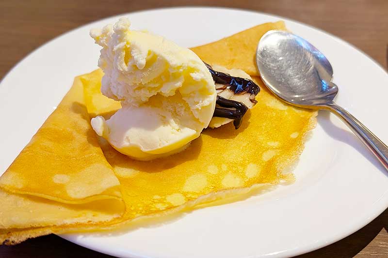 スタッフさんが作ってくれた焼きたてのクレープに、アイスとチョコバナナをのせて食べたのは絶品!というか最高でした!!