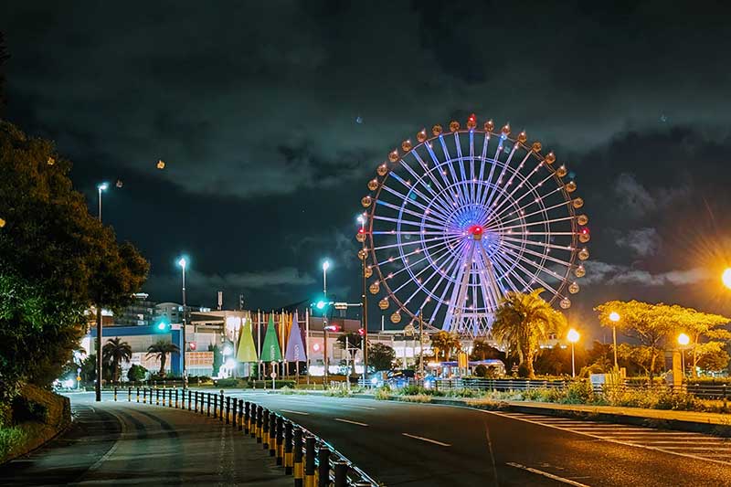 綺麗にライトアップされた、フェスティバルゲートの観覧車を眺めたり、近くの河川で魚が釣れそうなスポットを探したり(笑