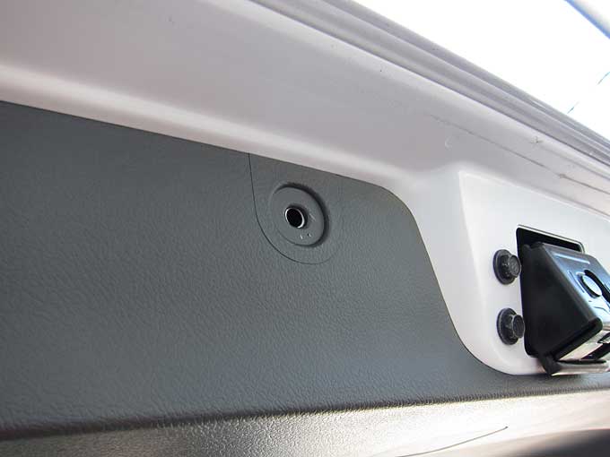さすがに、内張りのピンをブチ抜いてしまうとマズイ事になりそうなんで、白いピンをかわしてバランス良く、かつなるべく上部に付けられる場所を探します。