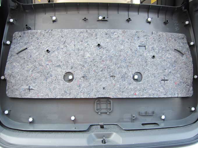 これ以上ハッチに重量をプラスしたくないんで、オマケ程度の気持ちですが、バッフルボードの背面にデッドニング用防音テープを1周させて、内張りの作業は終了。