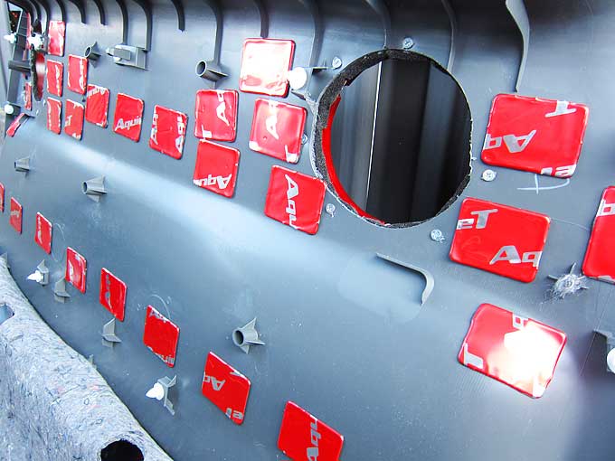 ガッツリとデッドニングするつもりで、鉛テープとオトナシートを用意してたんですが、ドアではなくハッチだと言う事を忘れてて、穴を全部ふさぐと重さでハッチの開閉に支障が出そうだったんで、今回は簡単に済ませる予定です。