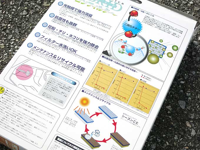 ※光触媒(二酸化チタン)は光のエネルギーを使って働く触媒です。光エネルギーを化学エネルギーに変換したり、環境を汚染する物質や悪臭の除去、汚れの防止などに使われています。各車の適合表はコチラ!